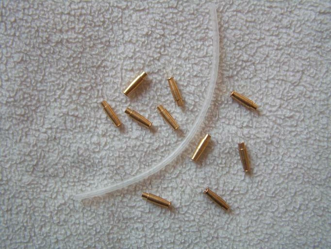 Ranskalaisen Bidozin messingistä sorvattu putkiperhorunko, pituus:15mm, 10kpl pussissa ja 10cm kirkasta silikoniputkea.