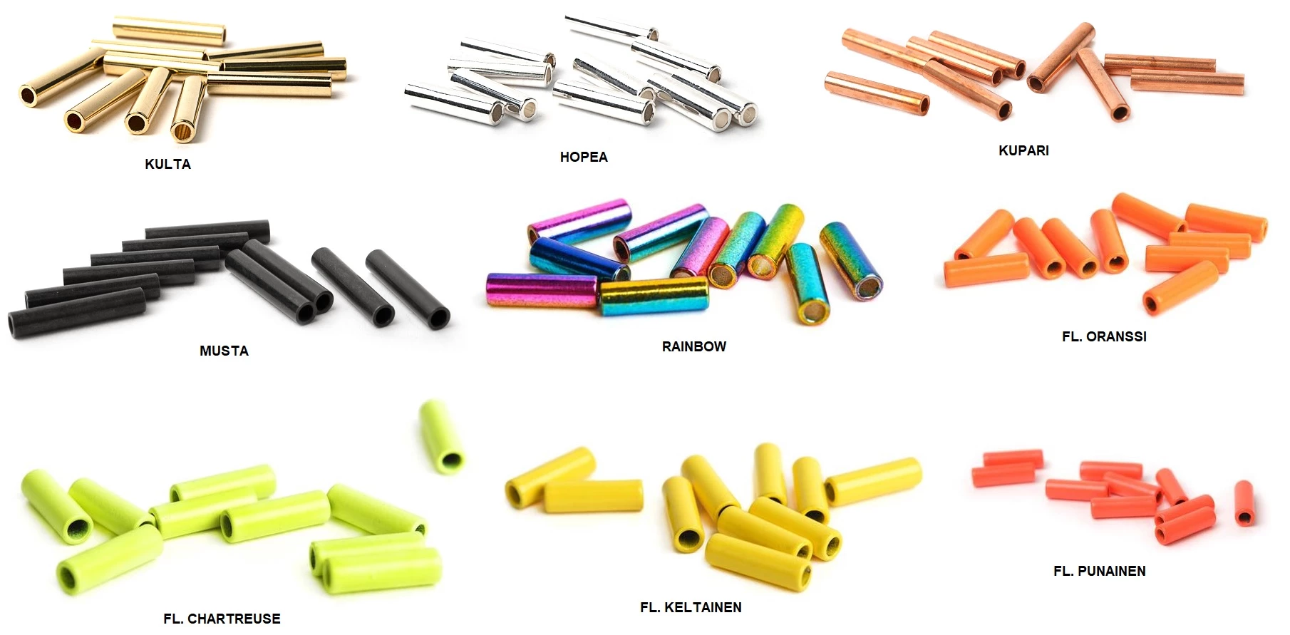 Super high finish US-Tubes of brass in all the colours and sizes you need to tie your Scandi-style tube flies. The metalic ones are brightly anodized and the coloured ones are powder coated with a durable colour.