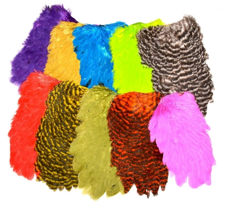 These saddles are just perfect for all kinds of flies, there are small feathers and bigger feathers, so you are able to tie many different kind and size of flies in one saddle.. And here we are talking about a very high quality of Hen feathers..