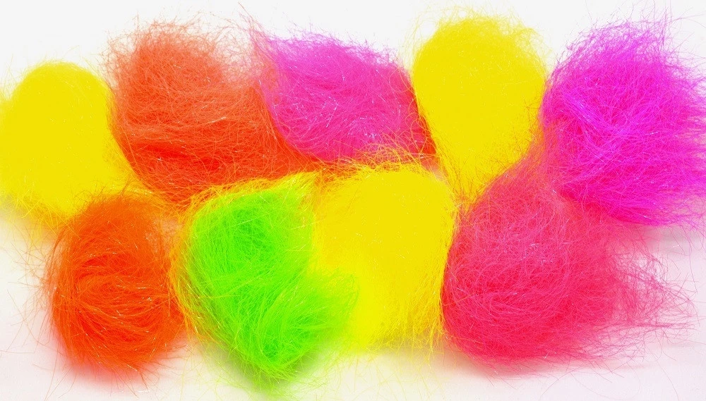 Our new Ultra Mix is extremely flourocent. It can be used as it is. But if you mix it with some Easy dubbing or Signature dubbing you will get an amazing effect. The fibre are long and strong.