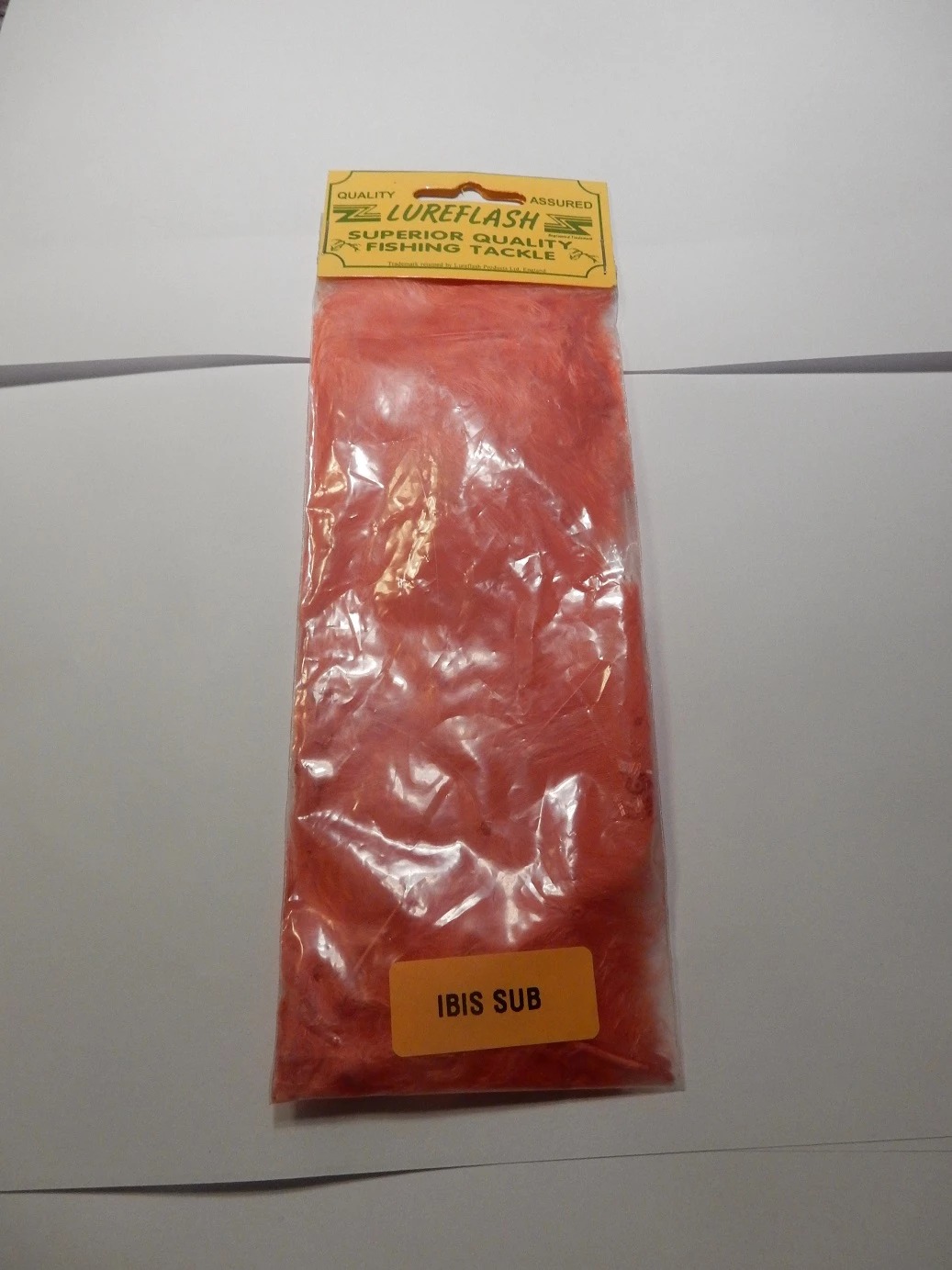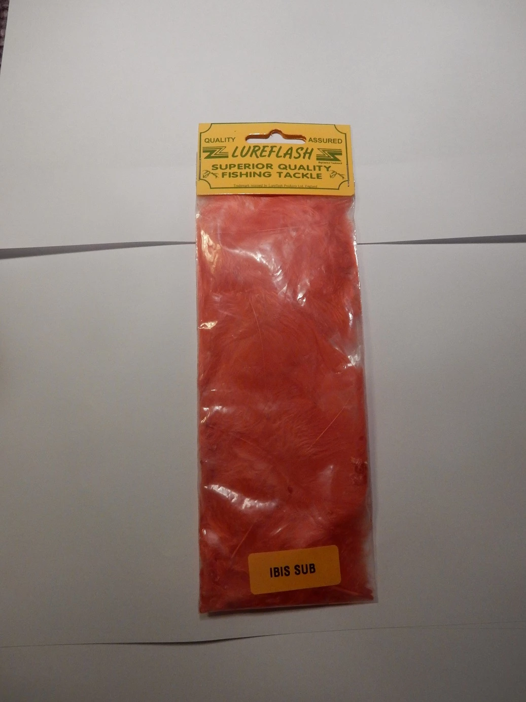 Lureflashin Ibis -jäljitelmä, toimii siipihöyhenenä tai marabou-höyhenen tapaan perhoissa. Todella elävä höyhen materiaali.