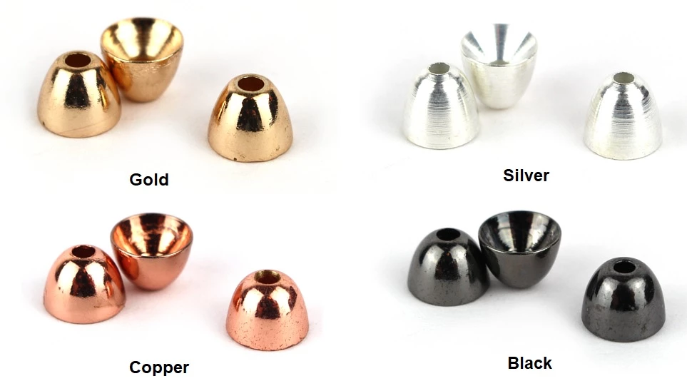 Brass cones with a particularly refined finish and shape, ideal for tying streamers. The colourations are obtained using techniques that prevent them from becoming discoloured during use.