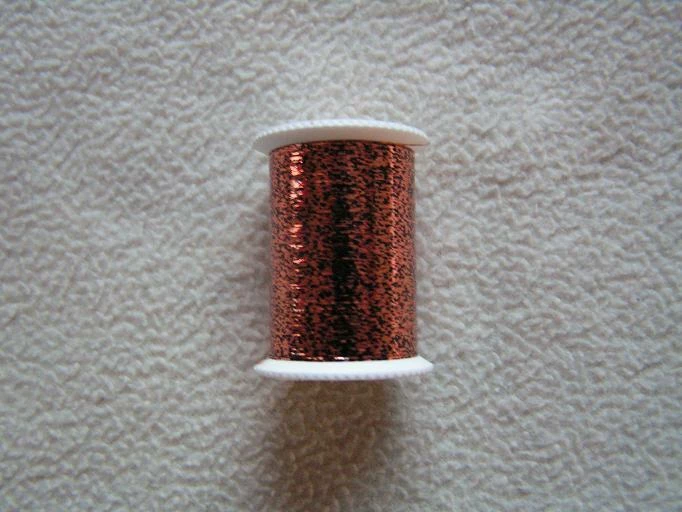 Englantilainen kuparin värinen tinseli, mustilla pisteillä.