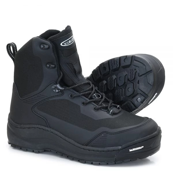 Musta Michelin is a modern, lightweight wading shoe with TPU re-enforced ballistic polyester upper. The TPU print in designed areas give good wear resistance without making the shoe too bulky and heavy. The shoe is easy to get in and it tightens easily. For added strength the stitch lines have their own grooves and the EVA midsole and the front bumper of the Michelin sole are stitched to the shoe’s upper.